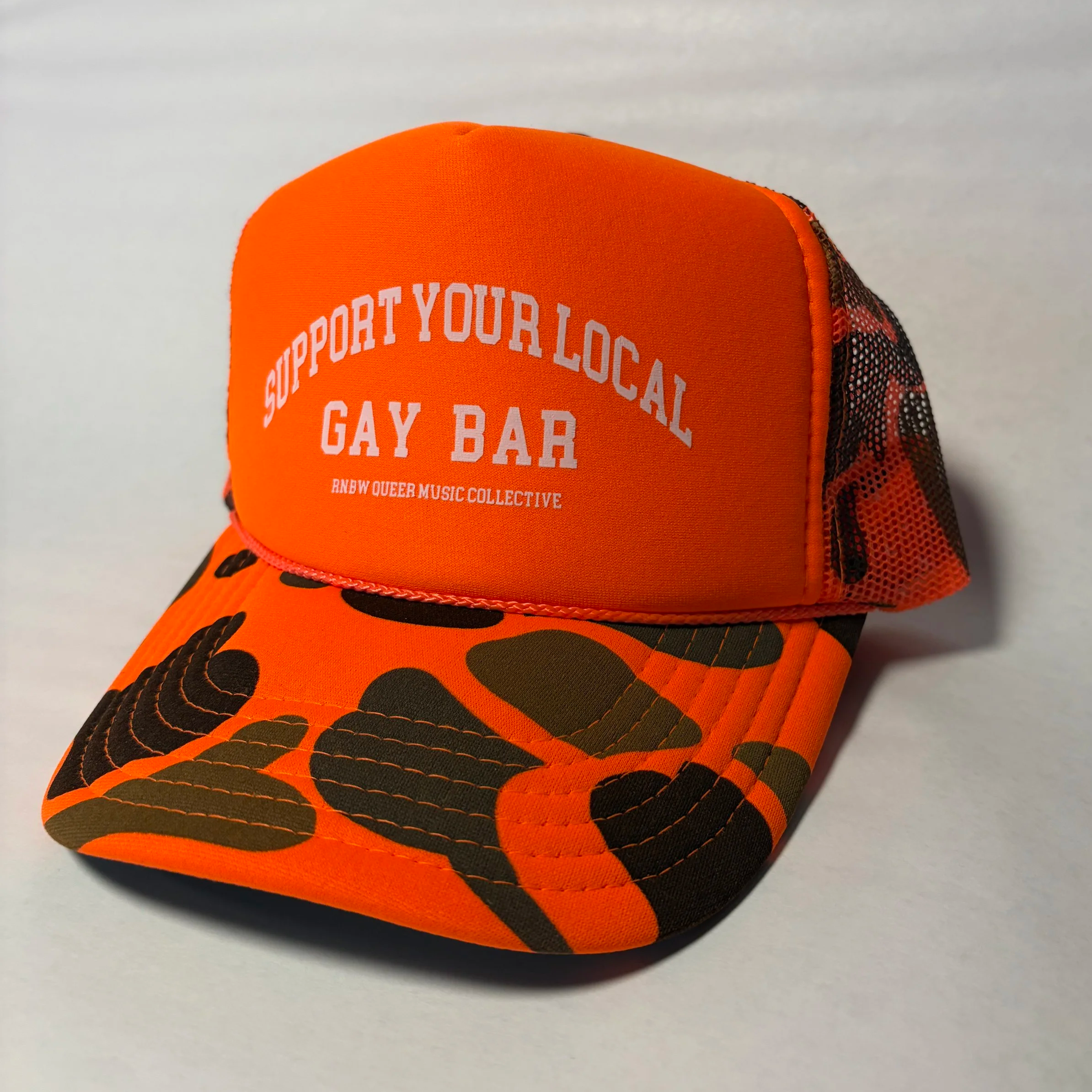 'SUPPORT YOUR LOCAL GAY BAR' HAT (ORANGE CAMO)